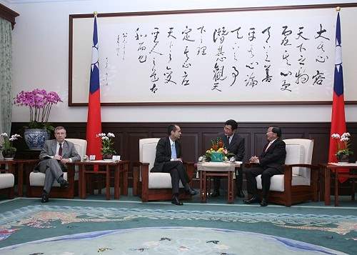 「無疆界記者組織」秘書長梅納今天下午由外交部次長朱玉鳳陪同,前來總統府晉見總統,總統府副秘書長林佳龍也在座。