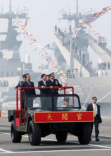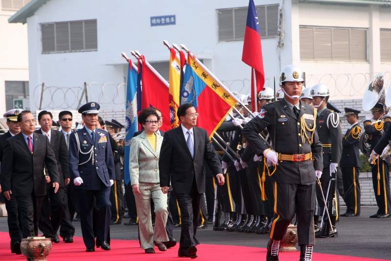 陳總統水扁偕同呂副總統秀蓮女士今天上午在海軍左營軍區主持「劍龍級潛艦成軍20周年」慶祝大會,除親自校閱部隊並致詞。