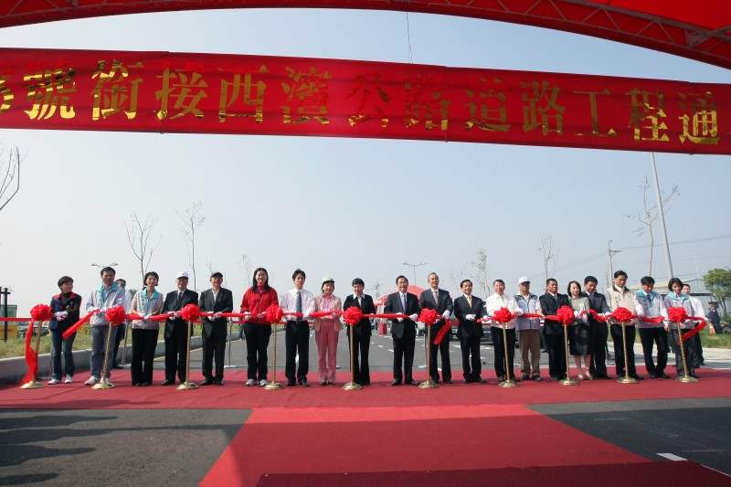今天的這條道路,就是咱台南市的「台江大道」。本路段開放通車以後,不但能夠提供咱台南都會地區的民眾快速通往國道8號,並接續國道1號及國道3號,也就是一高和二高,另一方面又能夠結合西濱公路、國道8號、國道1號、國道3號,以及東西向快速公路台南關廟線,簡單講,這條道路完成後,等於咱台南都會地區外圍公路交通網,差不多已整個建構完成,乎咱台南地區的交通更加快速、便利。