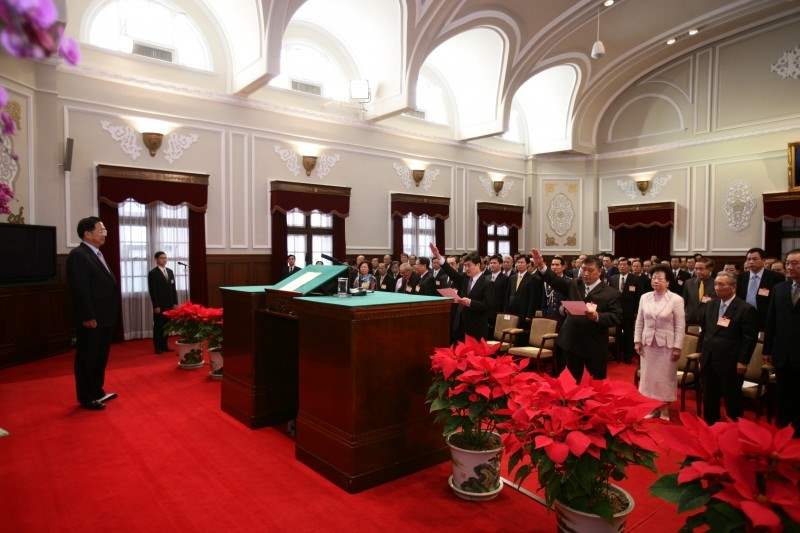 典禮上午十時在總統府大禮堂舉行,總統由總統府副秘書長陳其邁陪同抵達會場,中央政府機關首長均與會。