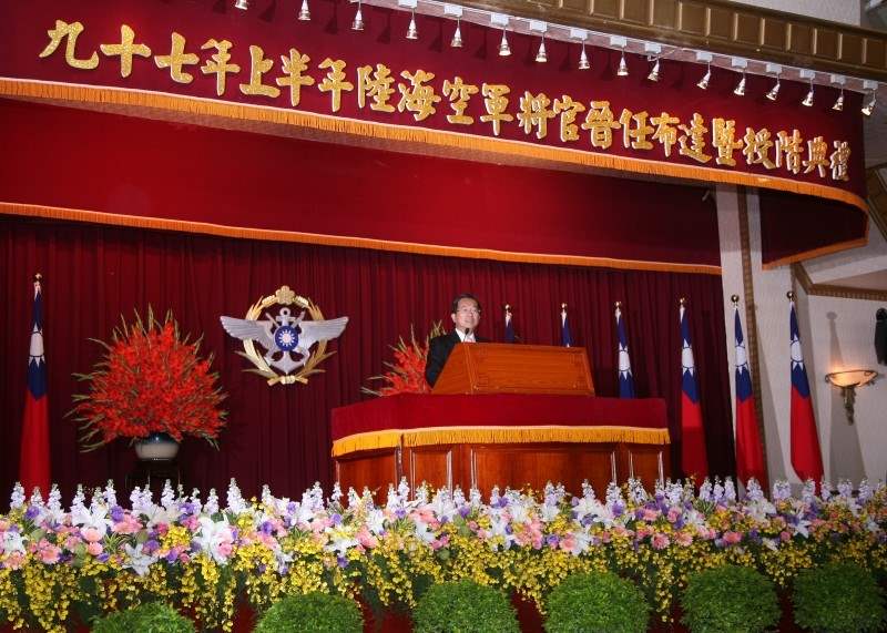 回顧國軍建軍發展歷史,在國家致力民主化進程時,國軍一直恪遵憲法、護衛人民,堅守民主憲政精神。相信國軍官兵弟兄早已深刻體認,國軍是國家的軍隊、是全台灣2300萬人民的軍隊。特別是未來幾個月內,我們將舉行立法委員及總統大選兩次結合公民投票的全國性選舉,在這個台灣民主化的重要關鍵時刻,全體國軍官兵弟兄姊妹務必要貫徹軍隊國家化,嚴格禁止軍中政黨活動,尤其絕對禁止國軍為任何特定的對象動員及輔選。本人要再次強調,國軍是「為台灣的國家生存發展而戰」、「為台灣的自由民主而戰」、「為台灣2300萬人民的安全福祉而戰」。在座各位是國軍最優秀的領導幹部,期許大家堅定信念,以確保國家與人民的安全為職志,全力捍衛民主憲政!