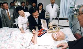 陳總統水扁先生今天上午特別親自前往台北縣新店市耕莘醫院探視前總統府國策顧問陶百川,並代表政府與人民頒贈「一等卿雲勳章」,以表彰他致力民主法治、強化監察制度、維護人權正義的卓越貢獻。