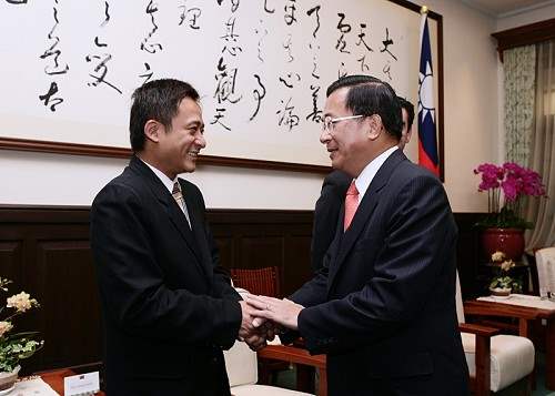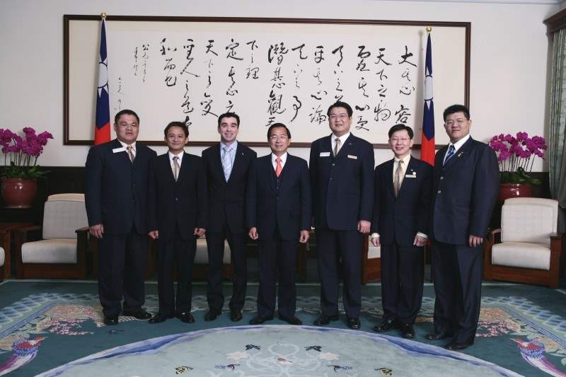 國際青商會2008年世界主席漢倫、中華民國總會第56屆總會長當選人杜國良,上午由青商會中華民國總會幹部陪同,前來總統府晉見總統,總統府副秘書長林佳龍也在座。