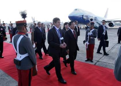 結束約一小時的會晤後,薄理事主席陪同總統登機,在艙門口兩人握手道別,專機繼續朝向瓜地馬拉飛行,並在瓜國時間1月13日下午3時30分(台北時間14日凌晨5時30分)抵達瓜國首都瓜地馬拉市空軍機場,我駐瓜國大使歐鴻鍊及瓜國禮賓司長登機恭迎總統,瓜國羅森塔外長在扶梯前迎接,陪同總統通過禮兵行列,總統並登上禮台向現場採訪媒體揮手致意,表達感謝之忱。