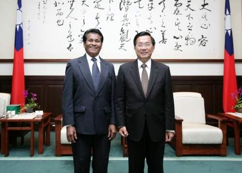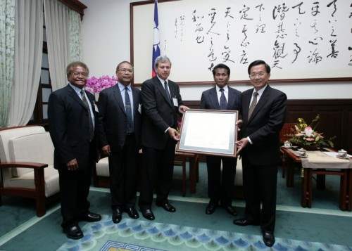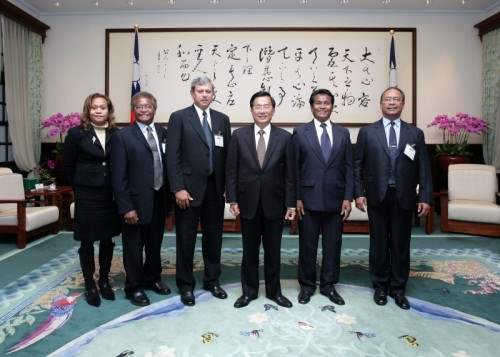 帛琉共和國參議長惠普斯、參議員席德(Alan R. Seid)、參議員鄧格爾(Yukiwo P. Dengokl)、參議員歐圖(Caleb T.O. Otto),下午由帛琉駐台代辦Lydia Ngirablosch及外交部次長朱玉鳳陪同,前來總統府晉見總統,總統府副秘書長林佳龍也在座。