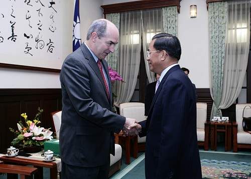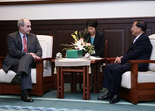 美國前副國安顧問克勞區夫婦上午由外交部次長朱玉鳳陪同,前來總統府晉見總統,行政院副院長邱義仁、總統府副秘書長林佳龍也在座。