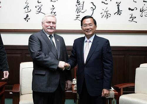 華勒沙前總統、華沙駐台貿易辦事處副代表莫拉夫(Morawski)、華勒沙基金會主席Piotr Gulczynski、前總統助理Adam Dominski等,上午由外交部次長朱玉鳳陪同,前來總統府晉見總統。總統府副秘書長林佳龍也在座。