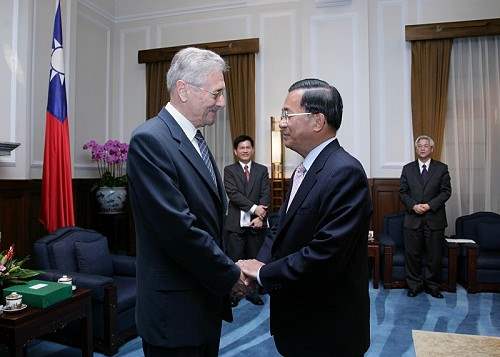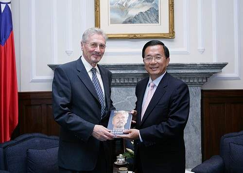 康斯坦司古前總統及前新聞部長Sorin Bottez、前總統辦公室主任Mihaela Marcu、國家電視台編輯部主任Anton Cragea、企業家Serban Damboviceanu等一行上午由外交部次長朱玉鳳陪同,前來總統府晉見總統,總統府副秘書長林佳龍也在座。
