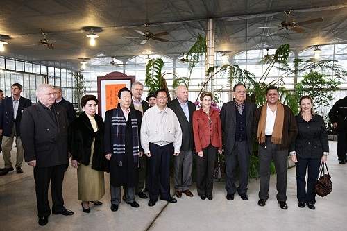 總統首先陪同訪賓前往位於宜蘭縣礁溪鄉的「金車蘭花園」參訪,在聽取簡報之後,總統即在園方人員解說之下,訪視玻璃溫室花朵,他除盛讚宜蘭的好山好水,奠定宜蘭農業的基礎之外,並肯定園區人員成功將傳統花卉栽植結合最新的生物科技與知識,創造台灣農業的新方向。