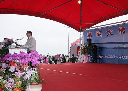 2000年總統大選當時,本人曾對咱最敬愛的鄉親耆大保證,只要本人能夠當選總統,一定盡最大的努力與打拚來建設地方。媽祖大橋是咱北港、六腳地區最重要的運輸道路,經過中央和地方政府三年來的規劃、全力打拼趕工,媽祖大橋工程今天正式完工通車,未來咱鄉親不但有便利、高品質的道路可以使用,便利的交通一定乎咱地方來大發展,讓大家生活更好,各行各業大賺錢。