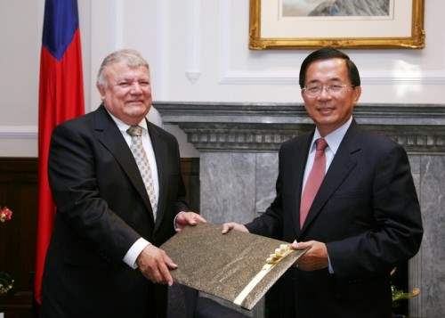 尼加拉瓜共和國新任駐台特命全權大使達比亞(William Tapia) 今日向陳總統水扁先生呈遞到任國書。