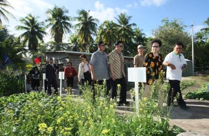 下午,副總統前往Buada訪視台灣駐諾魯農業技術團,除聽取團長簡報目前的農技團現況以及未來計畫之外,也參觀農技團以三個月時間建立起來的蔬果示範區,並享用當地培育出來的甜美水果。由於諾魯大部分地區為珊瑚礁及磷礦,不僅土地貧瘠且表層土壤稀薄,農技團的豐碩成果令副總統及訪團成員深表讚佩、留下深刻印象。