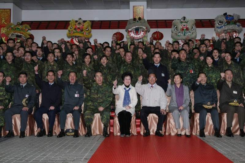 陳總統水扁先生今天下午視導空軍聯合作戰指揮中心、國軍聯合作戰指揮中心及海軍台北戰情中心,除聽取相關簡報,並致贈加菜金慰勉戍守官兵辛勞。晚間,總統也偕同呂副總統至關渡指揮部,於欣賞舞龍舞獅表演後,與官兵代表除夕會餐,並致詞向大家賀節、肯定國軍貢獻。