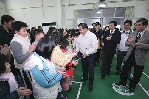 陳總統水扁先生今天下午前往桃園縣大園鄉沙崙村「弘化懷幼院」及蘆竹鄉盤營村的內政部「兒童之家」訪視,為院童們帶來最親切的問候,與他們共賀2008新的一年。