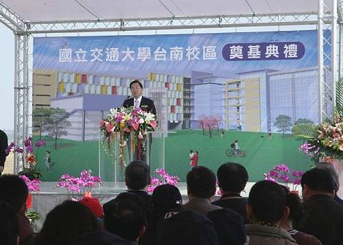 總統也在參加國立交通大學台南校區奠基典禮時表示,交大台南校區成立之後,不僅對於均衡南北發展有極大的助益,更讓台南鄉親除了原本的國立成功大學,再增加一所國家級、世界級的光電名校。相信在大家的共同努力下,「竹科經驗」必定能在全台灣發光發熱,台灣高科技產業的發展也一定能夠再創佳績,成為全體台灣國人同胞共同的驕傲。總統在致詞後,並為奠基石揭幕,種植學術大樹作為紀念。