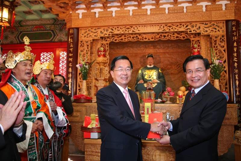 陳總統水扁先生今天下午前往台南市參加「延平王祭」,除恭喜台南府城鄉親,可以順利完成延平郡王祠的「祠廟合一」,讓歷史原貌再度重建外,並為延平王獻上第一柱清香,懇請延平王能夠庇佑2,300萬善良的台灣人民平安、順利。