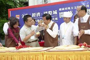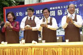 陳總統水扁先生今天下午參加總統府地方文化展系列-「文化.經濟.國際城-生活新都會.台中文化城」開幕式暨記者會,並在致詞結束後,與台中市胡志強市長一同示範泡沫紅茶的製作。