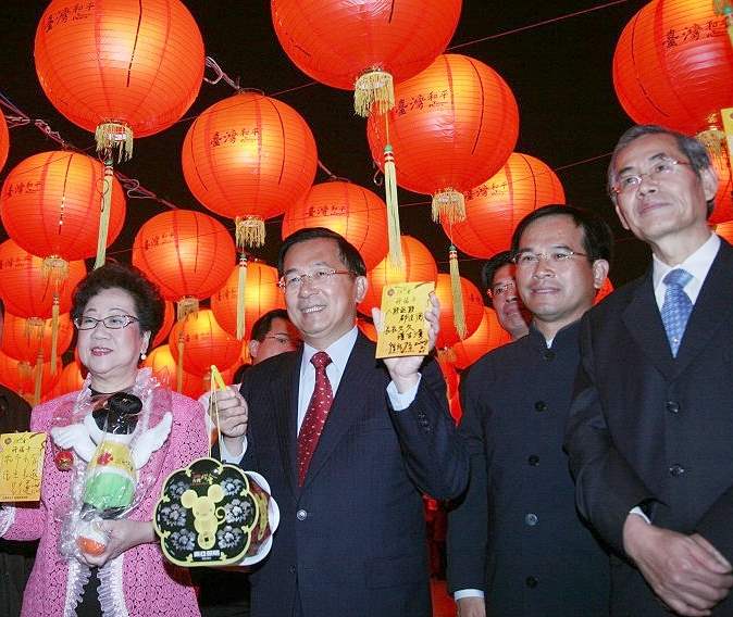 陳總統水扁先生今天晚間偕同呂副總統秀蓮女士前往台南縣出席「2008台灣燈會開燈儀式」,並與總統府副秘書長陳其邁、台南縣長蘇煥智與交通部長蔡堆親自點亮今年的主燈,並參觀園區各主題燈區。