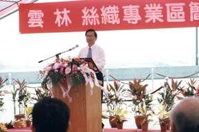 總統首先在經濟部林義夫部長、雲林縣張榮味縣長等人的陪同下,前往雲林縣科技工業區竹圍子區,聽取由台灣絲織開發公司張煜生先生所做的相關簡報。總統在簡報後表示,雲林科技工業區「竹圍子絲織專業區」是由十八家紡織同業為響應政府產業根留台灣的號召,共同集資自行開發,他要對這群積極在台灣發展、默默耕耘的紡織同業先進們,表示肯定與感佩之意。總統說,三十多年來,台灣的紡織工業在業者辛勤的經營下,有效結合資本、技術及勞力,造就整體上、中、下游完整的產業體系,在國際上具備相當優勢的競爭能力,不但每年產值近五千億台幣,而且為我國創造百億美金以上的外匯,佔全國總額百分之七十的比率,其相關產品的產量更名列全球前兩名,實為過去帶動國內經濟蓬勃發展的火車頭。