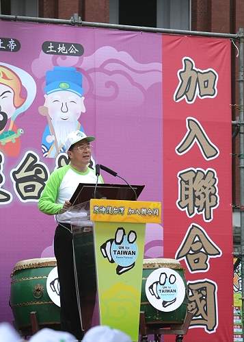 陳總統水扁先生今天上午出席由國家文化總會在總統府前廣場舉行的「眾神護台灣、加入聯合國」活動,除應邀致詞外,並與總統府副秘書長陳其邁、國家文化總會秘書長陳郁秀、加入聯合國大聯盟理事長陳隆志以及台灣道教總會副理事長陳文田共同擊鼓象徵「遶境千里、守護台灣」活動正式起跑,希望喚起民眾對加入聯合國運動的重視與支持。