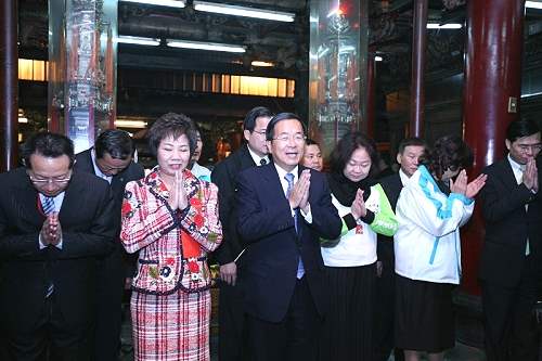 總統並表示,這次前來主要是祈求朝天宮媽祖婆能保佑3月22日的公投能過關,讓台灣能在世界舞台站起來,讓台灣加入聯合國。他說,北港媽祖的精神就是台灣精神,北港朝天宮有314年歷史,三百多年來,朝天宮面對很多困難,包括戰亂、洪水、地震和颱風,雖然受災再重建,但不因三百多年來的天災地變而改變全民對媽祖的敬仰,香火反而更加鼎盛。