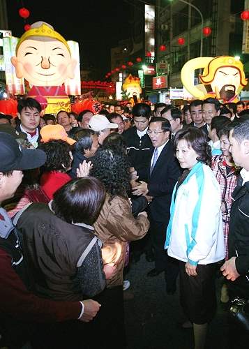 總統晚間在北港朝天宮參香後,隨即進入繞境會場,受到民眾熱烈歡迎。總統表示,前不久他才來北港參加媽祖大橋的通車典禮,今天再度前來,看到大家這麼熱心參加繞境,令他非常感動。