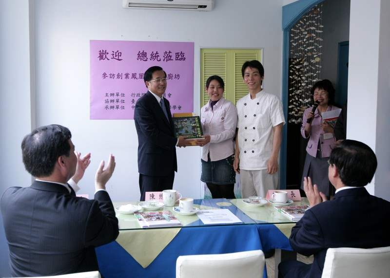 稍早,總統也拜訪創業鳳凰-陳靖鵑小姐,肯定她善用資源積極創業。總統表示,過去婦女朋友常在向銀行申請創業貸款時,遭到欠缺擔保品或保人的困難,限制了向銀行借貸創業資金的可能性。勞委會與財團法人中小企業信用保證基金自去年起共同推出低率「創業鳯凰-婦女小額貸款」,免提保人及營利事業登記,最高可申貸金額50萬元,以協助婦女朋友圓夢。其次,過去政府也推動有關婦女就業的相關福利措施,例如實施「兩性工作平等法」及修改「勞動基準法」工時規定,放寬延長工時限制及夜間工作限制等,增進女性的就業機會。