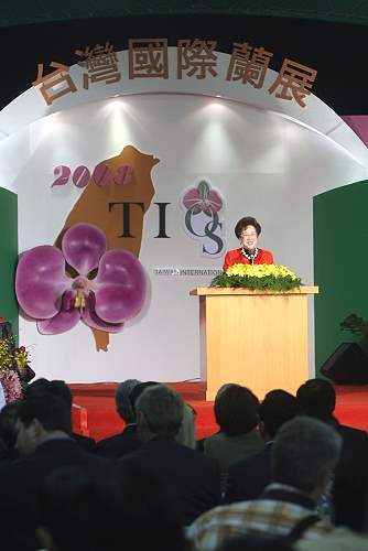 副總統致詞時首先肯定國際蘭展是台南縣蘇煥智縣長在舉辦盛大的元宵燈節後的另一盛舉,她表示,台南縣是傳統的農業縣,也是現代高科技的代表,蘭花則是上帝送給人們最好的禮物,然而今天台灣的蘭花其實是農業科技的一項傑作,「蘭花」真的是象徵了台南縣既是農業,也是科技的大縣。