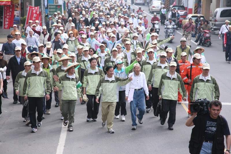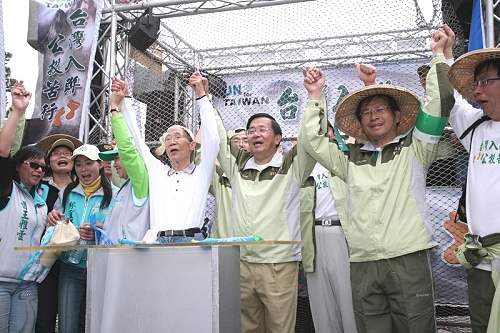 陳總統水扁先生今天上午參加「台灣入聯台南苦行」活動,和參與的鄉親從台南縣善化鎮肉品市場出發,經過兩個小時步行,順利抵達啤酒廠,寫下許願卡繫在「漁網(希望)」上,期許「公投苦行圓滿,台灣入聯成功」。