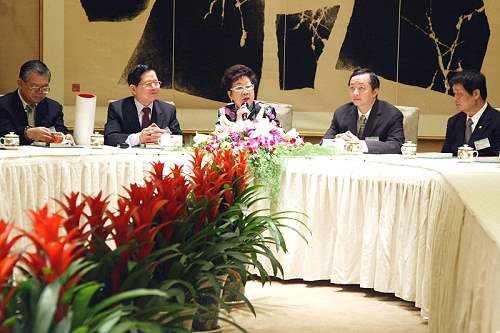 副總統並以她輔佐陳總統8年來的經驗,提出許多看法與訪賓分享,她指出,2000年陳總統與她就任以後,民進黨政府完成921地震所有後續救災工程,SARS突然來襲也是在陳總統領導抗煞下渡過,921地震花費了政府約1兆1千億救災經費,SARS則花費了500億特別預算,另外整治基隆河、擴大公共建設也花費了2、3千億,然而在此同時,台灣很多資本,約略300億美元流向中國,加上前政府過去的舉債,目前還在分期還債階段,每年需清償3,500億元左右,對地方政府的補助每年也需要2,000億元,這就形成了政府沉重的財政負擔。她說,目前台灣兩位總統候選人正在角逐下屆總統,以上這些問題選舉期間都不被提及,但是在面臨困難時,當家的人就要有所承擔,才能造福人民。