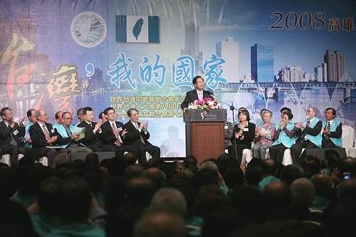 隨後,總統前往高雄市金典酒店,出席「世界台灣人大會第8屆、世界台灣同鄉會聯合會第35屆暨國外台灣婦女聯合會第7屆聯合年會」,為大家千里迢迢回到台灣,用行動表達對「台灣‧我的國家」的關心與支持,表達肯定與感謝。