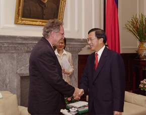 總統告訴訪賓,他在總統就職典禮演說中特別揭櫫「人權立國」的理想及目標,而目前我國的「國家人權委員會」正積極催生中,並且致力於將「國際人權法典」納入國內法,同時也與國際人權團體加強交流及合作,希望人權可以成為中華民國立國的新指標。