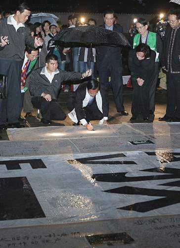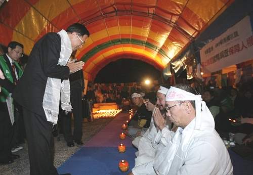 陳總統水扁先生今天晚間前往自由廣場,向抗議中國鎮壓西藏的靜坐群眾致意。