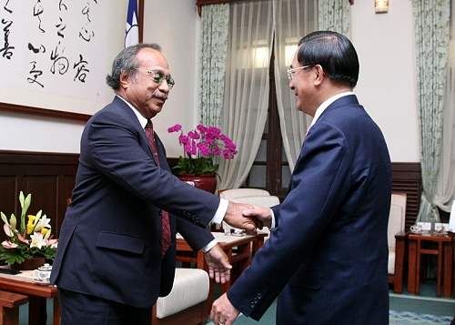 諾魯前總統—現任國會議員史可迪伉儷,下午前來總統府拜會總統,總統府副秘書長林佳龍也在座。