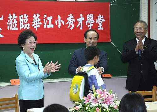 呂副總統秀蓮女士今天下午與立法院院長王金平一起訪視設於台北市華江國小的「小秀才學堂」,除致贈送小秀才掛牌與小秀才書包外,並與小朋友們熱切互動,場面十分溫馨。
