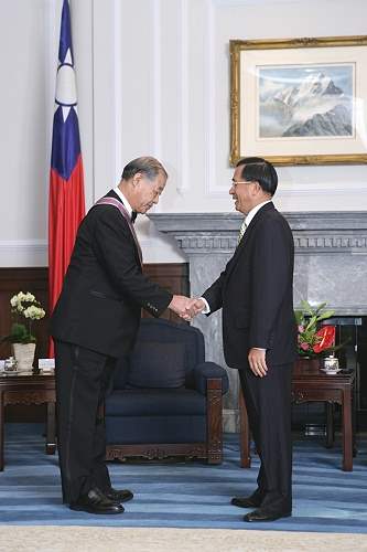陳總統水扁先生今天下午代表我國政府與人民頒贈「大綬景星勳章」給日本眾議員玉澤德一郎(Tamazawa Tokuichiro),以表彰他長期致力促進台、日雙方實質友好關係的卓越貢獻。