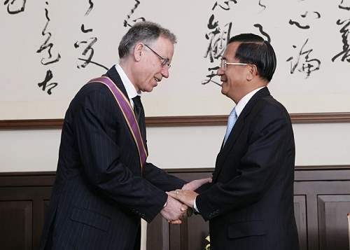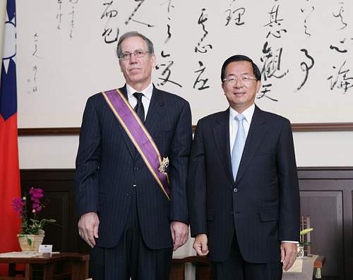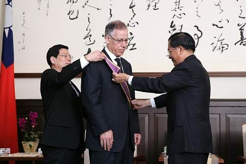 授勳儀式上午10時在總統府舉行,總統府副秘書長林佳龍、加拿大駐台北貿易辦事處代表孟貫中(Ronald Macintosh)等人也在場觀禮。