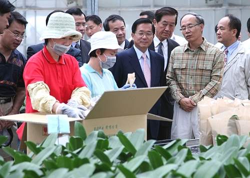 陳總統水扁先生今天上午前往台南縣訪視。他首先前往參觀位於後壁鄉的「台灣蘭花生物科技園區」,除瞭解目前台灣蘭花的商業品種,並實地走訪栽培溫室,瞭解蘭花的育種實況。