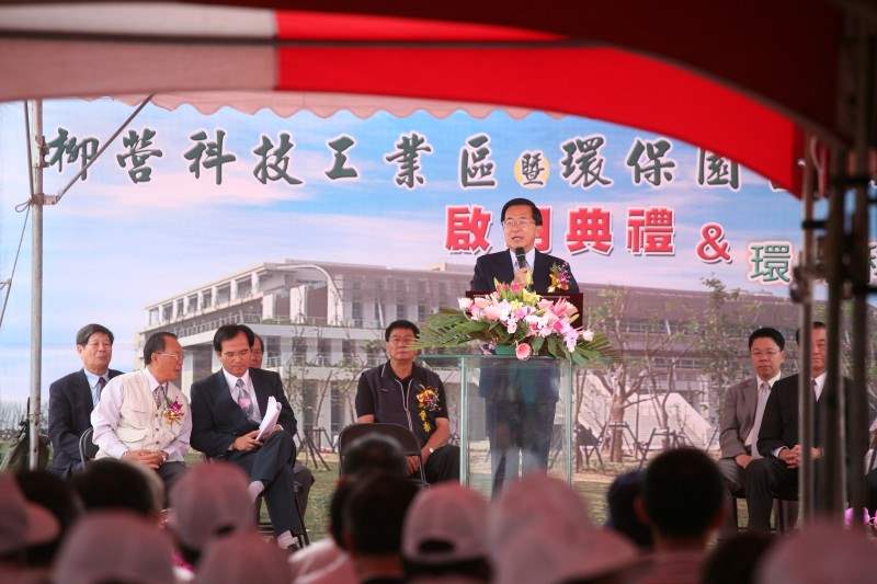 大家都知道,「柳營科技工業區」原本是台糖公司配合農地釋放方案,於2000年間報編為工業區,後來台糖公司改變政策暫停開發。台南縣政府為了促進溪北地區的發展,吸引資金的回流,積極和台糖公司協商接手後續的開發作業。所以,「柳營科技工業區」不但是台南縣政府第一個自行開發的工業區,也是全國第一個以「地方工業區開發管理基金」開發的工業區,用具體的行動表達咱蘇縣長繁榮地方的用心和苦心,在此請大家用熱烈的掌聲來感謝蘇縣長,以及陳唐山老縣長。