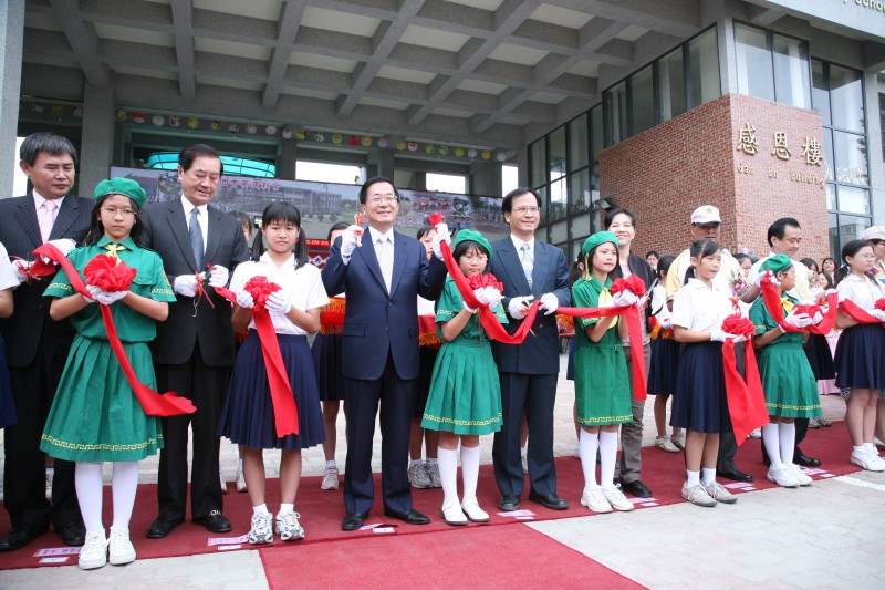 大家都知道,要建設ㄧ間有人文和藝術氣氛、又能夠成就百年志業的完美校園,不是一件簡單的事情,在這也要對這期間內參與校舍規劃改建的師生同仁表達感謝之意。今天咱行政大樓命名為感恩樓,就是希望6月就要來畢業的高年級的同學,在六年的學習之後,更加能夠感恩惜福、謙卑為懷,畢業之後,能夠持續打拼,為咱台灣、為社會和家鄉奉獻。過去我受到母校師長的栽培,才能夠有這機會擔任台灣的總統、為2300萬台灣人民服務、來貢獻自己的力量。也希望在我們的努力打拼下,讓咱隆田國小進步再進步,有機會繼續來產生第二個、甚至第三個台灣總統。