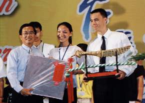 陳總統水扁先生今天晚間應邀參加由僑委會主辦的「華裔青年嘉年華會」活動,當總統到達會場時,熱情的年輕朋友分別高呼各自的隊呼,以表達歡迎之意,各研習營隊並由代表贈送總統團體照、印有台灣圖樣的運動服、原住民頭帶等紀念禮物,總統也回贈「台灣之友」徽章,及勉勵年輕朋友要「追求夢想不怕失敗,把握機會一定成功」。