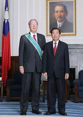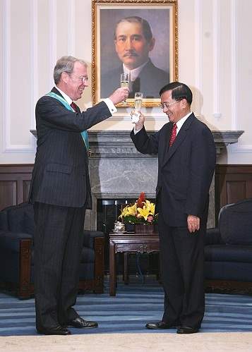 陳總統水扁先生今天上午代表我國政府與人民頒贈美國在台協會理事主席薄瑞光(Raymond F. Burghardt)「大綬卿雲勳章」,以表彰他致力於促進台灣與美國之間友好關係所作的卓越貢獻。