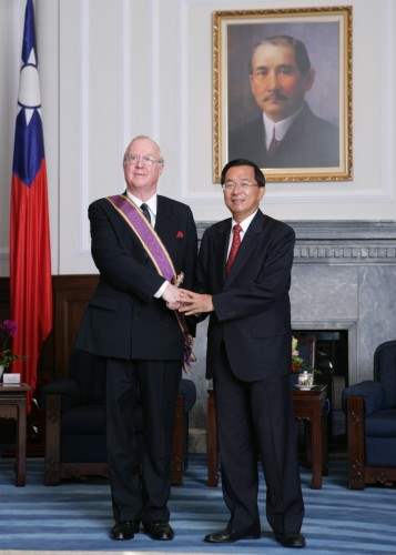 授勳儀式上午11時在總統府舉行,呂副總統秀蓮女士、總統府副秘書長林佳龍、外交部次長朱玉鳳及英國貿易文化辦事處代表麥瑞禮(Michael Reilly)等人也在場觀禮。