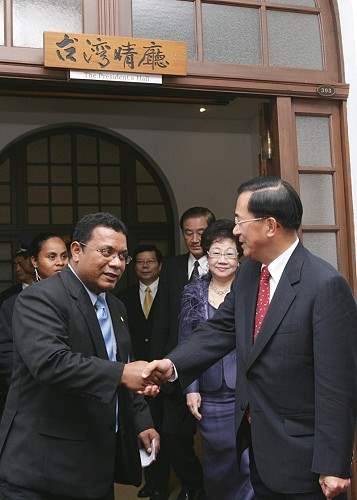 陳總統水扁先生今天晚間偕同呂副總統秀蓮女士會晤諾魯共和國總統史蒂芬(Marcus Stephen)伉儷,對史蒂芬總統伉儷率團來台參加新任總統馬英九先生、副總統蕭萬長先生的就職典禮,代表我國政府與人民表達歡迎與感謝之意。。