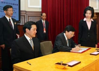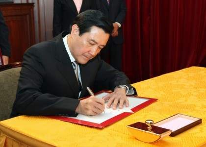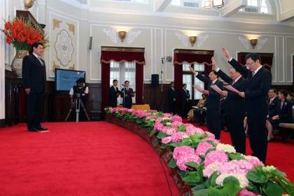 簽署任命令及宣誓儀式都在總統府大禮堂舉行,來台參加我國新任總統、副總統就職活動的友邦國王、總統、總督、總理、特使團,以及蕭副總統萬長先生、立法院院長王金平、司法院院長賴英照、考試院院長姚嘉文等我國政府首長也在場觀禮。