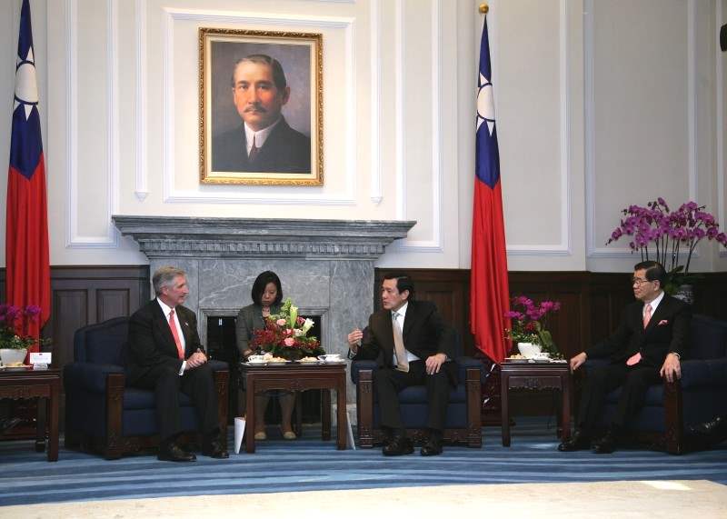 美國慶賀團其他成員還包括:國際共和黨協會理事法倫柯夫(Frank Fahrenkopf)、麻州前副州長希里(Kerry Healey)美國在台協會理事主席薄瑞光(Raymond F. Burghardt)、美國在台協會台北辦事處處長楊甦棣(Stephen Young),中午由國安會秘書長蘇起、外交部部長歐鴻鍊、陪同前來總統府晉見總統、副總統。