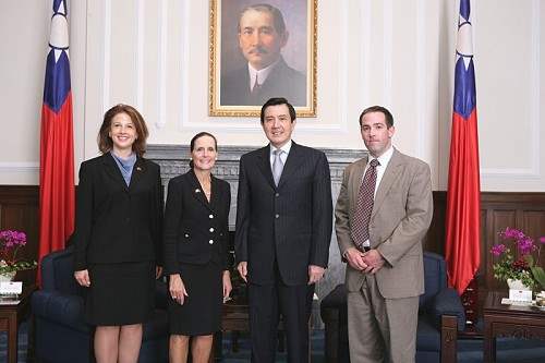 美國聯邦眾議員史蜜特女士上午由外交部次長朱玉鳳陪同,前來總統府晉見總統,國家安全會議秘書長蘇起也在場作陪。