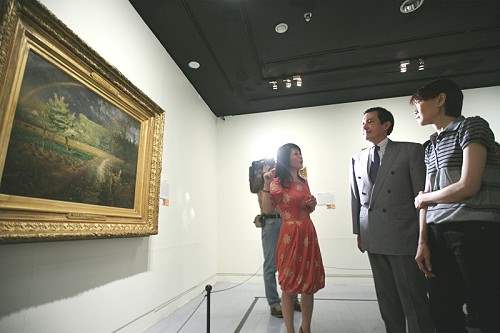 隨後,總統與夫人則由館方引導,前往一樓參觀「驚艷米勒—田園之美畫展」,受到與會民眾的熱烈歡迎,同時總統伉儷也到二樓參觀歷史博物館的館藏,欣賞清朝服飾之美。