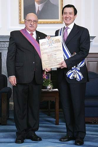 馬英九總統今天下午代表我國政府與人民頒贈中美洲議會議長岡薩雷斯(Julio Guillermo González)「特種大綬景星勳章」,以表彰岡薩雷斯議長長期支持我國加入聯合國及世界衛生組織等國際組織、促進我國與中美洲議會交流合作的卓越貢獻;總統並以促進民主發展之貢獻卓著,接受中美洲議會決議頒贈的「法蘭西斯科‧莫拉桑勳章」。