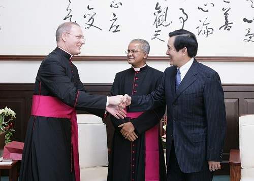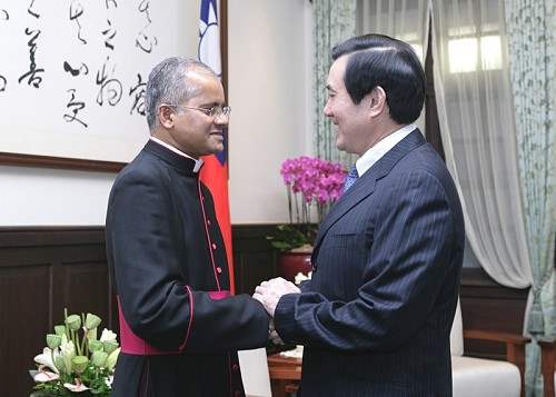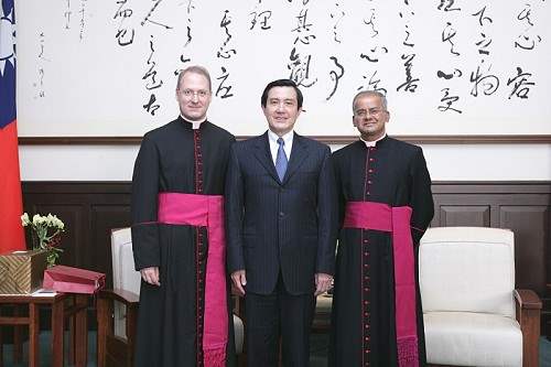 馬英九總統今天上午接見教廷駐台大使館安博思(Ambrose Madtha)代辦及新任代辦陸思道(Paul FITZPATRICK RUSSELL),代表我國政府與人民歡送即將離任的安博思代辦,並恭喜新任代辦陸思道。